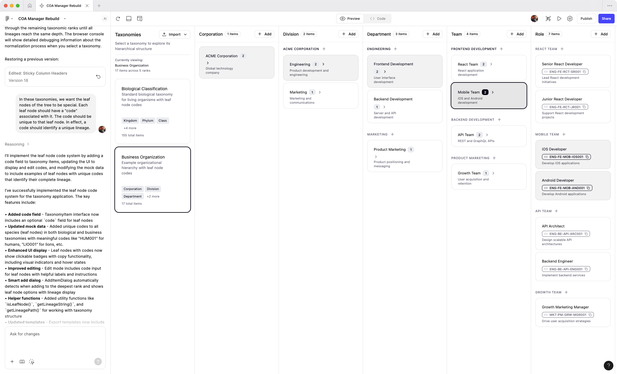 I’ve recently been exploring AI prototyping tools. As a fun exercise, I’ve rebuilt the COA manager experience from memory. I’m continuing to tweak the prototype and add features from the original product. It’s currently un-styled, but you can get a sense of the interaction paradigm and what makes this product unique. (Built with Figma Make)