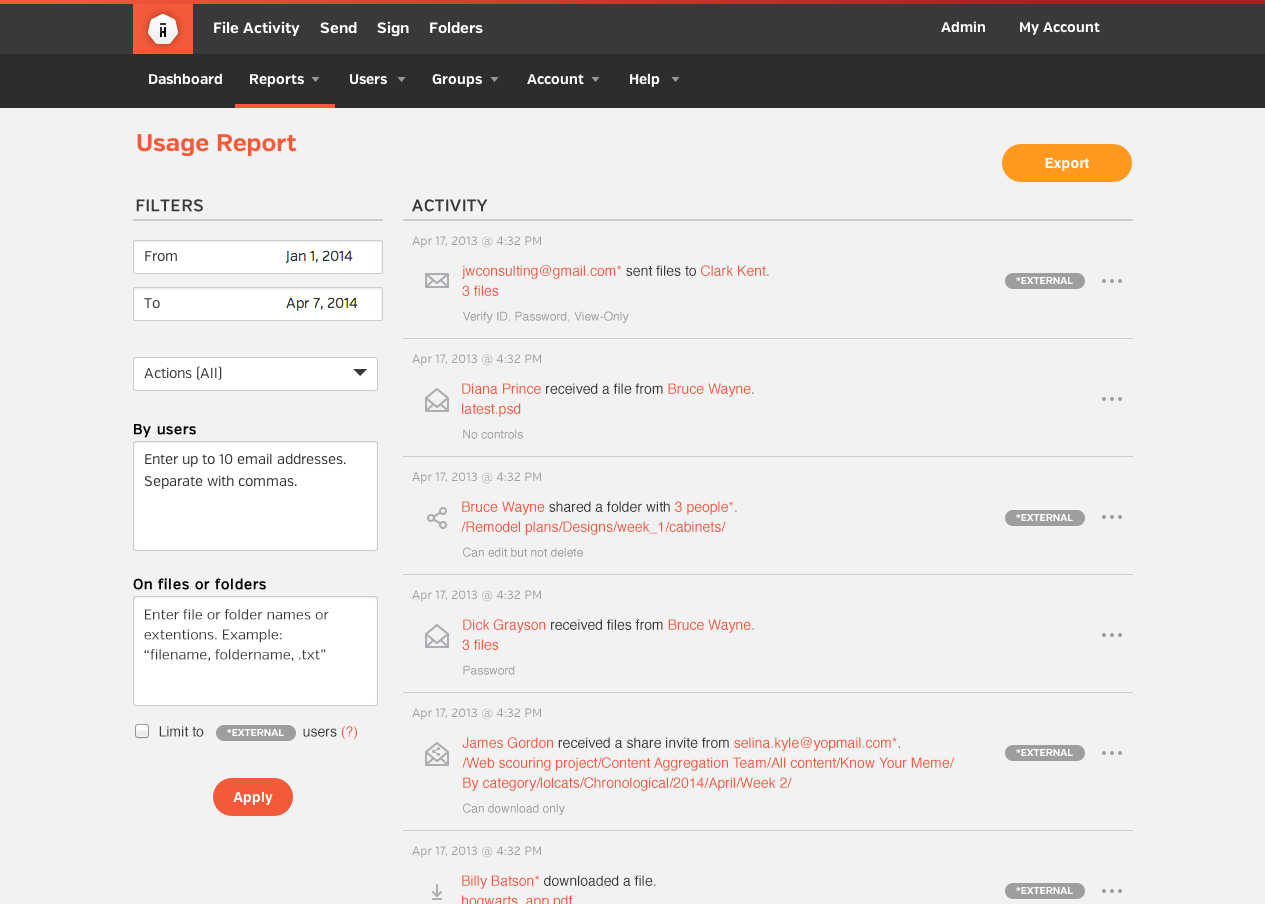 Hightail Usage Report