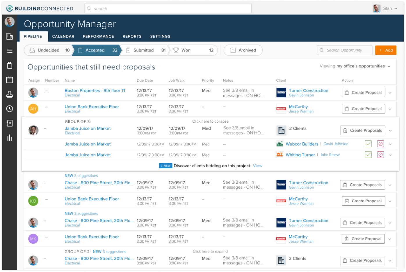 Designed improvements that allowed for grouping of RFPs, a construction-tech industry first. Also created a mechanism for suggestion/discovery of related RFPs, allowing subcontractors to maximize their chance of winning work.